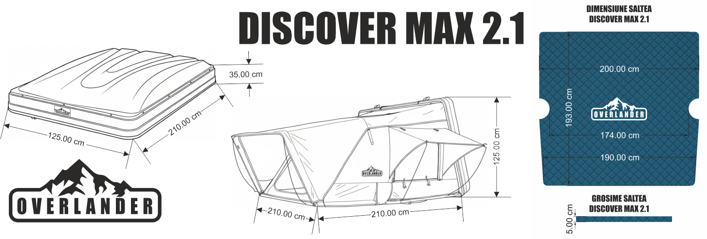 Cu toate aceste specificații și caracteristici de înaltă calitate, cortul de plafon auto Overlander Discover MAX 2.1 cu Sky Roof este alegerea ideală pentru cei care vor să trăiască adevărate aventuri în aer liber, bucurându-se în același timp de confortul unui cort sigur, durabil și bine gândit pentru orice tip de teren.