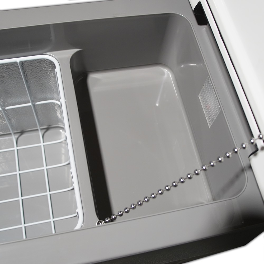 Frigiderul Auto Overlander pentru camping vine însoțit de un adaptor AC la DC și un cablu de alimentare DC de 2,5 metri, asigurându-ți opțiuni flexibile pentru alimentare. De asemenea, dispune de o rezervă interioară anti-scurgere pentru a preveni eventualele incidente.