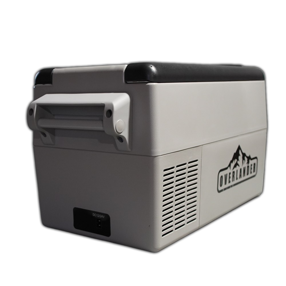 Frigiderul auto Overlanding 35L, cu compresor DC, asigură o răcire eficientă între -20°C și 20°C. Se alimentează la 12/24V sau 220V și are o capacitate generoasă de 35L. Funcționează silențios (<50dB) cu o putere de 50W și dimensiuni compacte (690x345x382mm), fiind ușor de integrat în mașină sau la camping. Designul gri deschis adaugă un plus de eleganță.